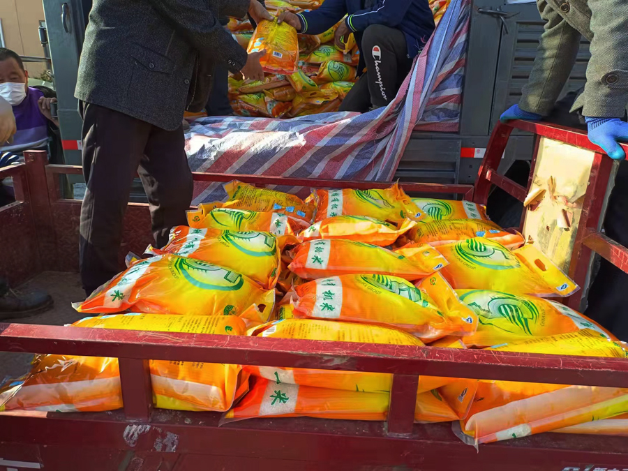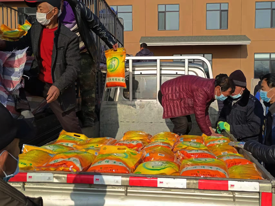 共同為莊河塔嶺鎮(zhèn)來寶溝村、福寧村、朝陽寺村捐贈20噸大米及防疫物資